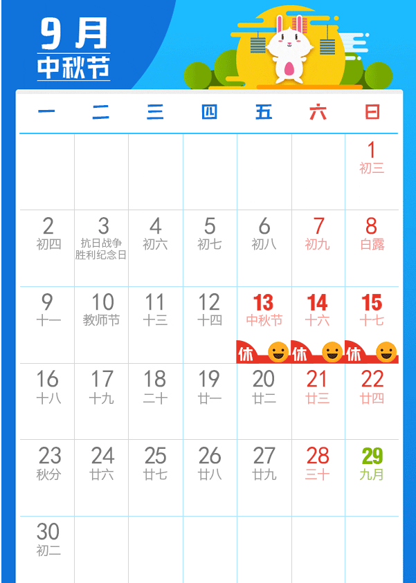 2019年中秋節(jié)9月13日放假,與周末連休。根據(jù)相關(guān)規(guī)定,高速公路免費(fèi)僅針對(duì)春節(jié)、清明節(jié)、勞動(dòng)節(jié)和國(guó)慶節(jié)四個(gè)國(guó)家法定節(jié)假日,所以,中秋期間高速公路通行不免費(fèi)。