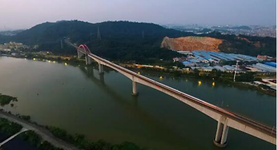 全長(zhǎng)13.43公里,現(xiàn)由廣州南高鐵工務(wù)段廣州北檢查工區(qū)負(fù)責(zé)養(yǎng)護(hù)維修。它位于京廣高鐵廣州南—廣州北區(qū)間。復(fù)興號(hào)穿梭在線路上,遠(yuǎn)處便是廣州的高樓大廈。長(zhǎng)長(zhǎng)的大橋一直蜿蜒到鏡頭再也無法捕捉之處,“消失”在視野里。