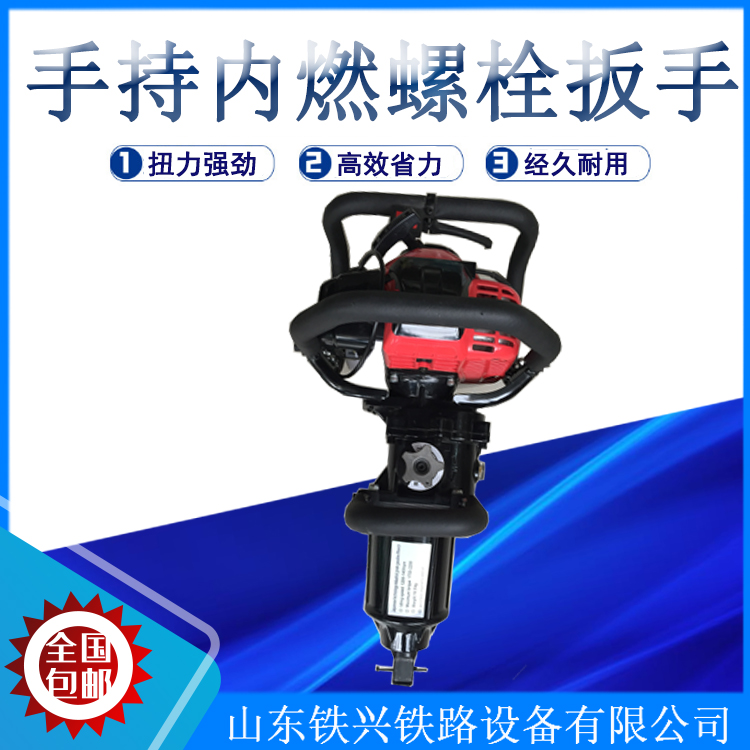4. 將換向手柄由空檔放置于你所需要的檔位(正轉或反轉)抬起操作手把,將套筒套在軌枕螺母上,旋轉離合器手柄,拉動離合器使之結合,套筒開始工作,當軌枕螺母松開或鎖緊按需要的技術要求時,松開離合器手柄,離合器自動復位(即脫離狀態(tài)),套筒停止工作,這就完成一條軌枕螺栓的松開或鎖緊的全過程。