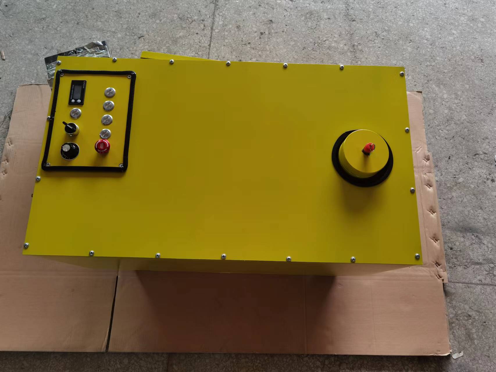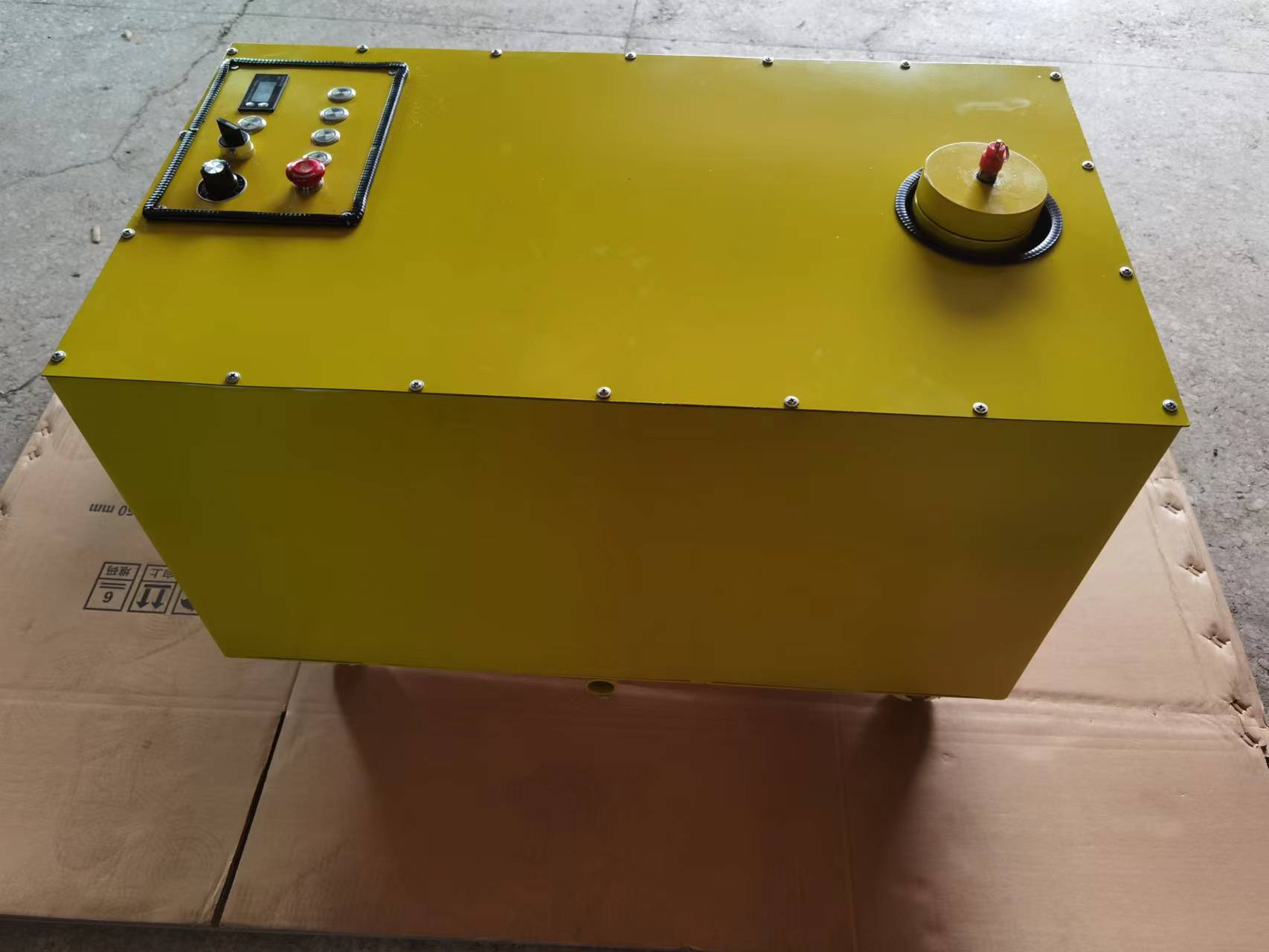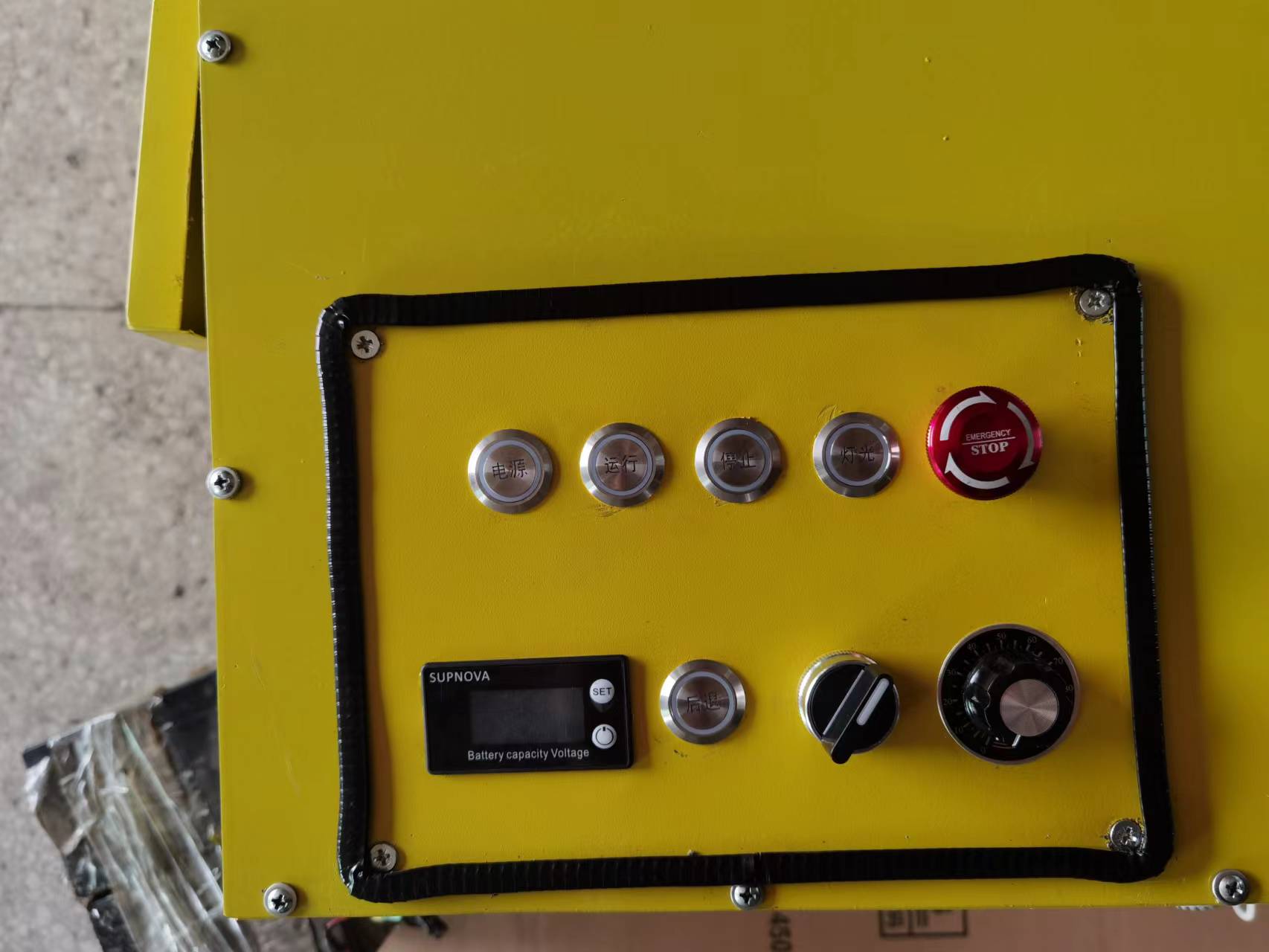 4.為了方便夜間作業(yè)還設(shè)置了照明裝置,按下燈光按鈕即可,本機(jī)還設(shè)置了急停按鍵,發(fā)生緊急事情按下急停按鈕,直接抬下道