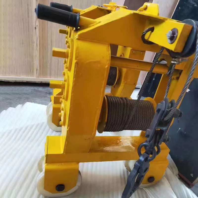多功能拉軌車適用于工務(wù)部門作業(yè)中搬運(yùn)鐵路路基邊存放的各型鋼軌或混凝土枕及轍叉等線上料物資。該拉軌車采用二級齒輪減速傳動,并設(shè)有棘輪,可將較重的標(biāo)的物直接從路肩托攏吊起運(yùn)走,具有快速起重吊運(yùn)效果。購買一組(兩臺)可完成拉運(yùn)鋼軌、轍岔心、吊運(yùn)軌枕、道碴以及拖拉成組道岔等較困難、安全系數(shù)小的作業(yè)。